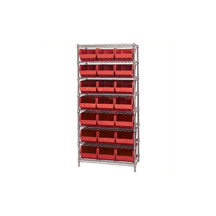 36 x 18 x 74" - 8 Shelf Wire Shelving Unit with (21) Red Bins