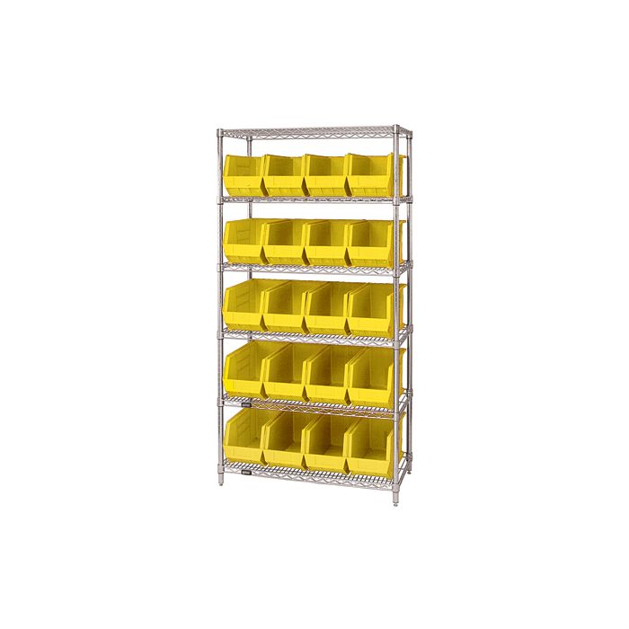 36 x 18 x 74" - 6 Shelf Wire Shelving Unit with (20) Yellow Bins