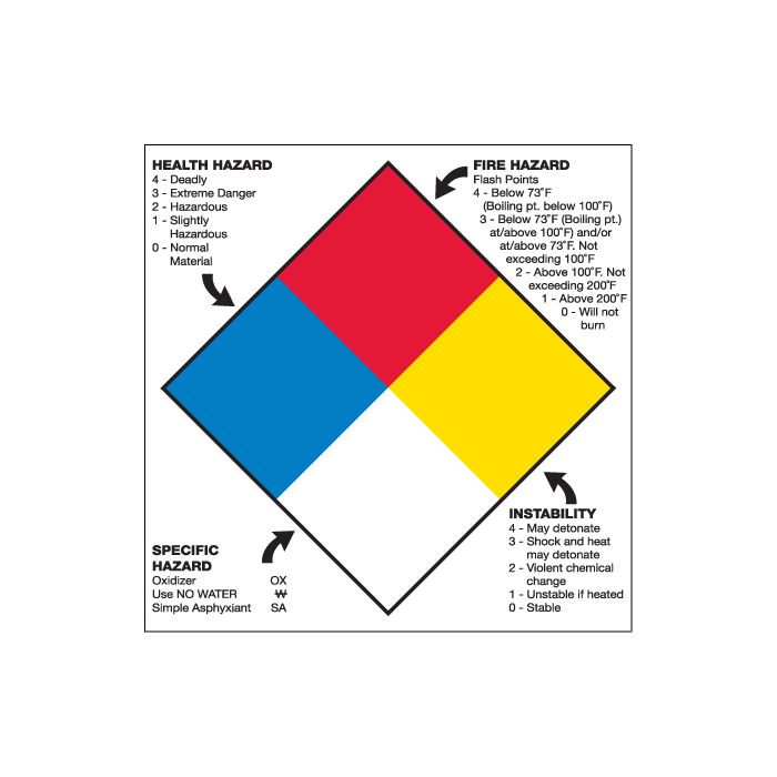 10 3/4 x 10 3/4" - "Health Hazard Fire Hazard Specific Hazard Reactivity"